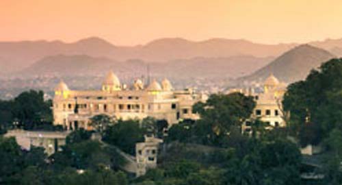 The Lalit Laxmi Vilas Palace is located atop a picturesque hill.