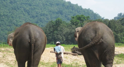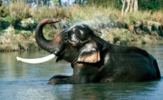 Zoological name : Elephas maximus Range : The Indian Elephant is found across India in protected forests and in Nepal, Bhutan, Bangladesh and Myanmar. Estimated population : It is estimated that there are over 28,000 Indian Elephants in India, including zoos and animal parks. Physical characteristics : Elephants are the largest of all mammals on land. The Indian elephant is smaller than the African elephant, however it can grow up to 11 feet tall and weigh up to 5 tons. The elephant's brain is the heaviest of all land mammals and can weigh up to 5 Kg. Elephants have large ears, are covered with gray hairy skin, and are characterized by their long trunks which can be used in a number of ways including for breathing, to suck in water or food, to lift and pull objects, and to make trumpeting noises and other sounds for communication. All male Indian elephants do not have tusks. Elephants that do have large tusks are hunted by poachers who seek the tusks for their ivory. The tusks, which are elongated incisor teeth, are used for digging, pushing and fighting with other male elephants. The molar teeth which elephants use for chewing are located within their mouths and are replaced as they get worn out, until about age 40. Habitat : The Indian Elephant is found in the wild in densely forested areas of India including the tropical forests of South India, North East India and the sub Himalayan region. Also known as the Asian Elephant it is found in Sri Lanka, Bangladesh, Bhutan, Nepal, Thailand, Malaysia, Myanmar, Viet Nam, Cambodia, Indonesia, Laos and China. Diet : Elephants are herbivorous creatures and spend a large amount of time everyday eating up to 300 Kg of vegetation, including grass, leaves, fruit and the bark of trees. The length of an elephant's digestive system is around 100 feet. Elephants that are tamed are fed on leaves, sugarcane, bananas and rice gruel. Behavior : Elephants have a complex social structure. In the wild they live in family groups led by mature female elephants, their young and sometimes older bull elephants. Mature male elephants are often solitary or live in small groups of male elephants only. Elephants live up to 70 years old and can sleep while standing. Tame elephants are made to sit or lie down while its trainer or mahout attends to it, in the wild however an elephant will not lie down unless it is sick. Elephants enjoy wallowing in water, which helps clean their skin, which does not have any sweat glands. Adult male elephants around the age of 20 undergo a phase of heightened sexual urge known as "musth." Male elephants become aggressive and violent for a phase lasting up to 60 days. This phase recurs periodically through an adult male elephant's life. Status : Indian Elephants are threatened by poaching for their tusks, by the loss of habitat due to human pressure on forested areas and due to human conflict. The isolated populations of wild elephants in individual wildlife sanctuaries are also threatened by loss of genetic diversity. Recently a number of corridors connecting wildlife sanctuaries have been established to encourage the migration of wild elephants. Tourists can see the Indian Elephant in most of the national parks in India while traveling on India wildlife tours: Periyar National Park in Kerala in South India and Corbett National Park in Uttaranchal in North India, are some of the best sanctuaries where Indian elephants can be observed in their natural habitat. |