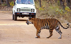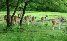 The open meadows during the cold winter months are usually teeming with barasinghas and there is plenty of tiger activity around the fringes. A female with two small cubs would circle around at least two or three times during the day and the swamp deer would go berserk, their husky alarm calls ringing through the jungle. Far from being the cunning, smart aleck, portrayed in Disney's adaptation of the Jungle Book, the real "Sher Khan" is true blue-blooded royalty. There is a museum at Kanha depicting attributes and activities of the park and tribal culture. It is closed every Wednesday. BEST TIME TO VISIT The climate of this region is tropical. Summers are hot and humid with a maximum and minimum temperature of 40.6°C and 23.9°C. Winters are pleasant with an average maximum and minimum temperature of 23.9°C and 11.1°C, respectively. The annual average rainfall is 152 cm. The park is closed from July to mid-October during monsoon. |